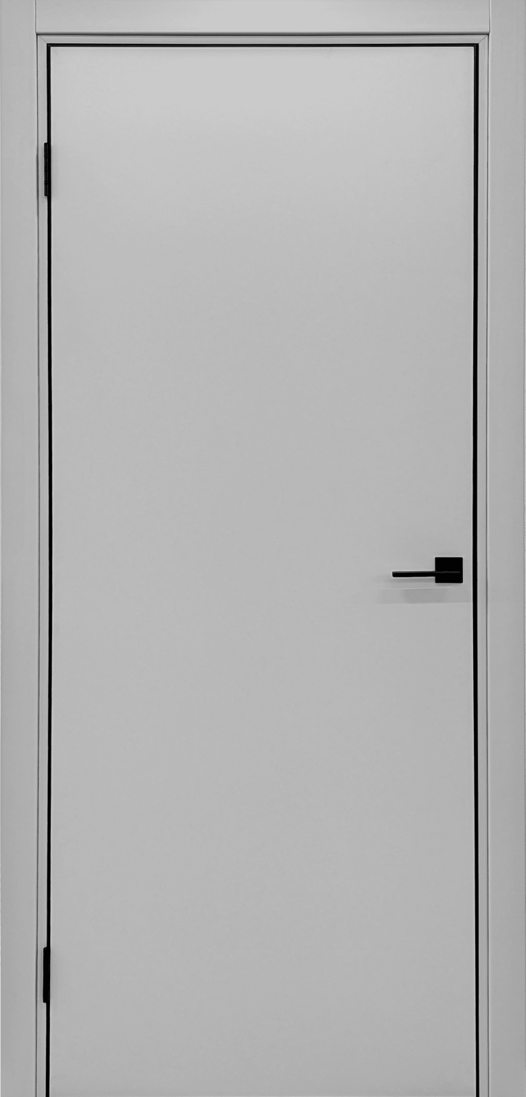 Дверь Kapelli classic гладкая, моноколор серый 7047 с алюминиевой торцевой накладкой в чёрном цвете