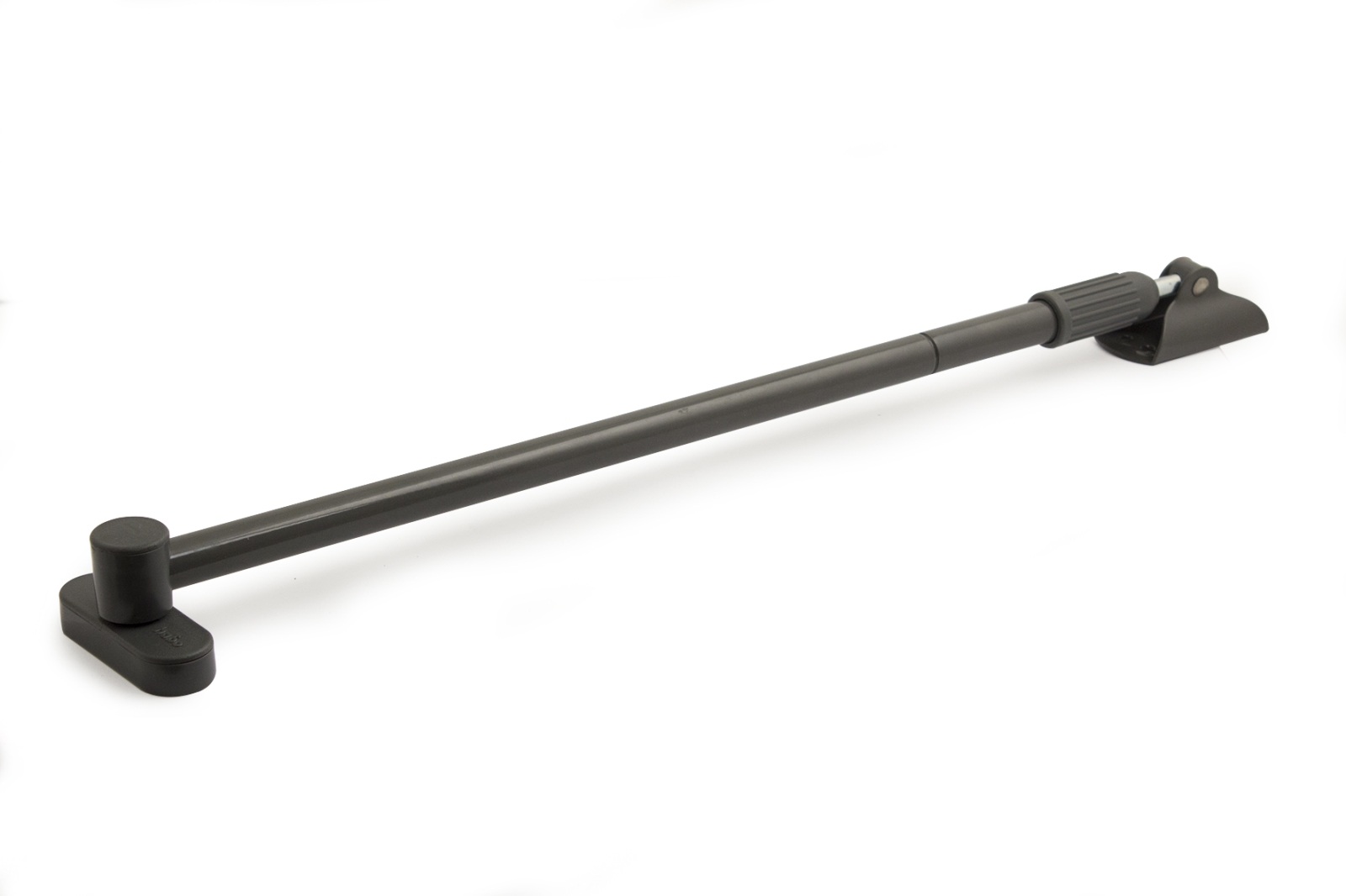 Дверной упор для дверей, открывающихся наружу, с установкой со стороны защелки. Ширина двери от 700 до 910 мм. Стационарная и телескопическая штанги из окрашенной стали. Тяга из нержавеющей стали с шарнирной головкой и пластиковой регулировочной втулкой.