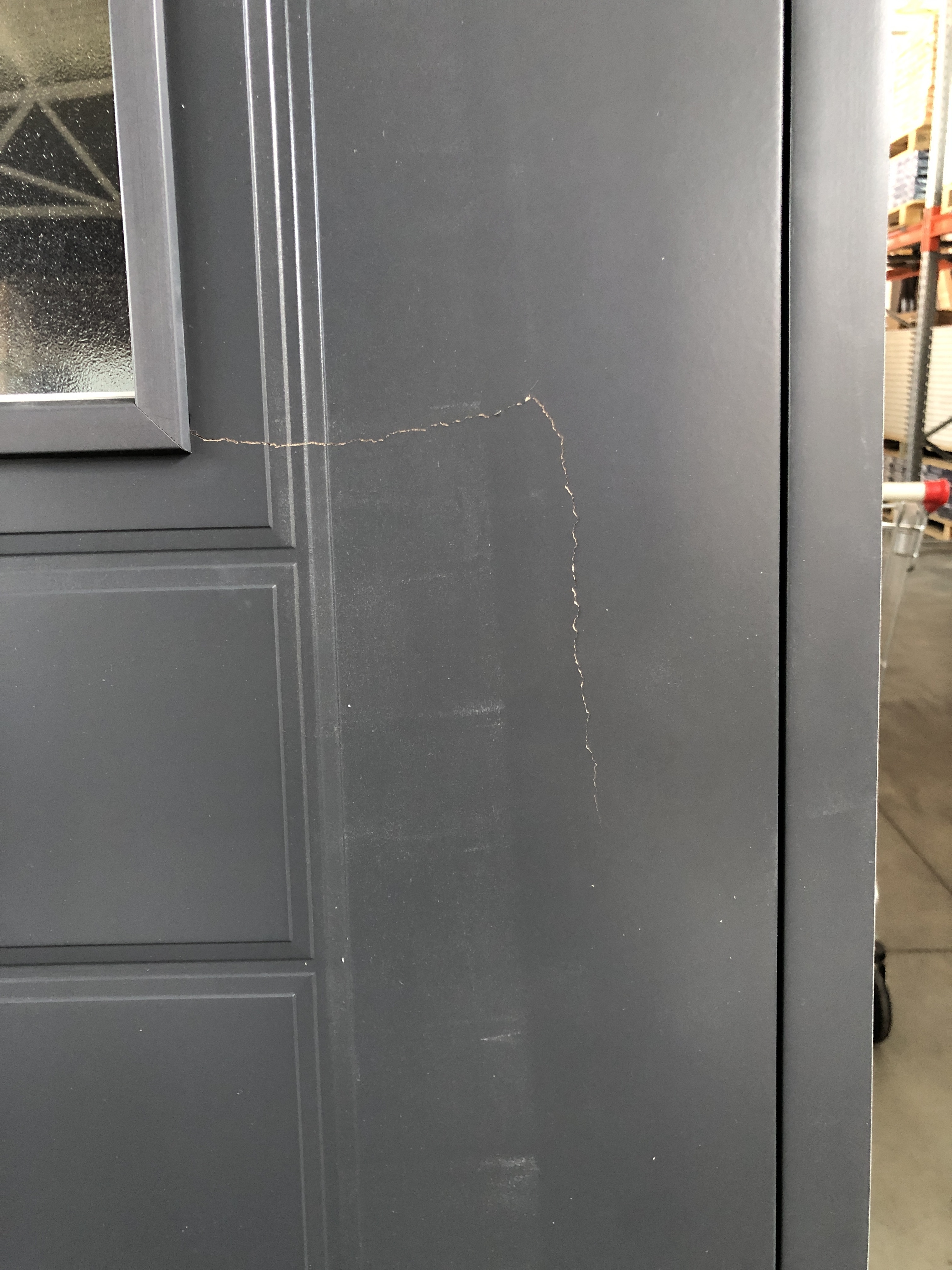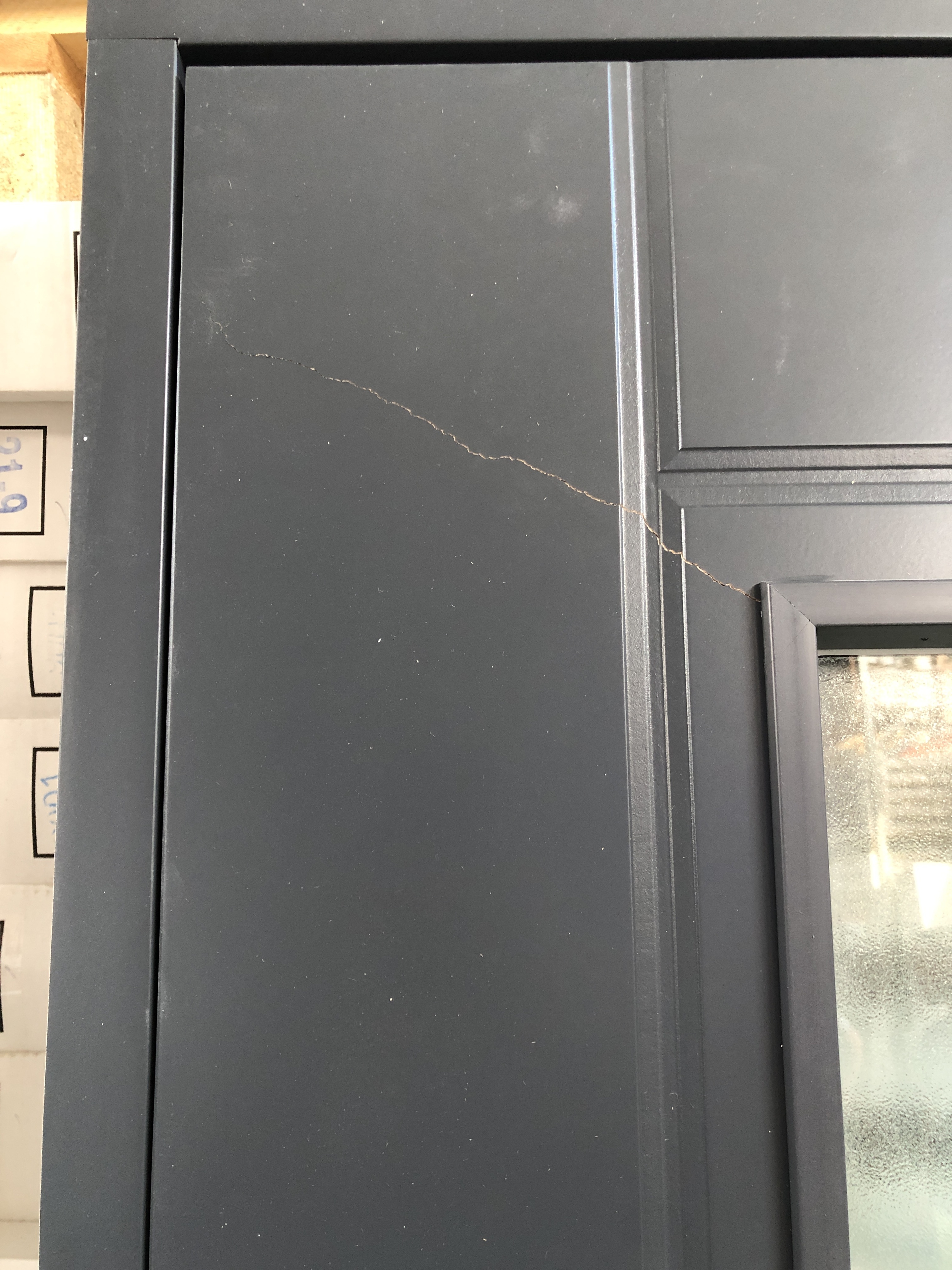 Причина уценки: трещина HDF-панели, небольшая потёртость стойки дверной коробки у порога..