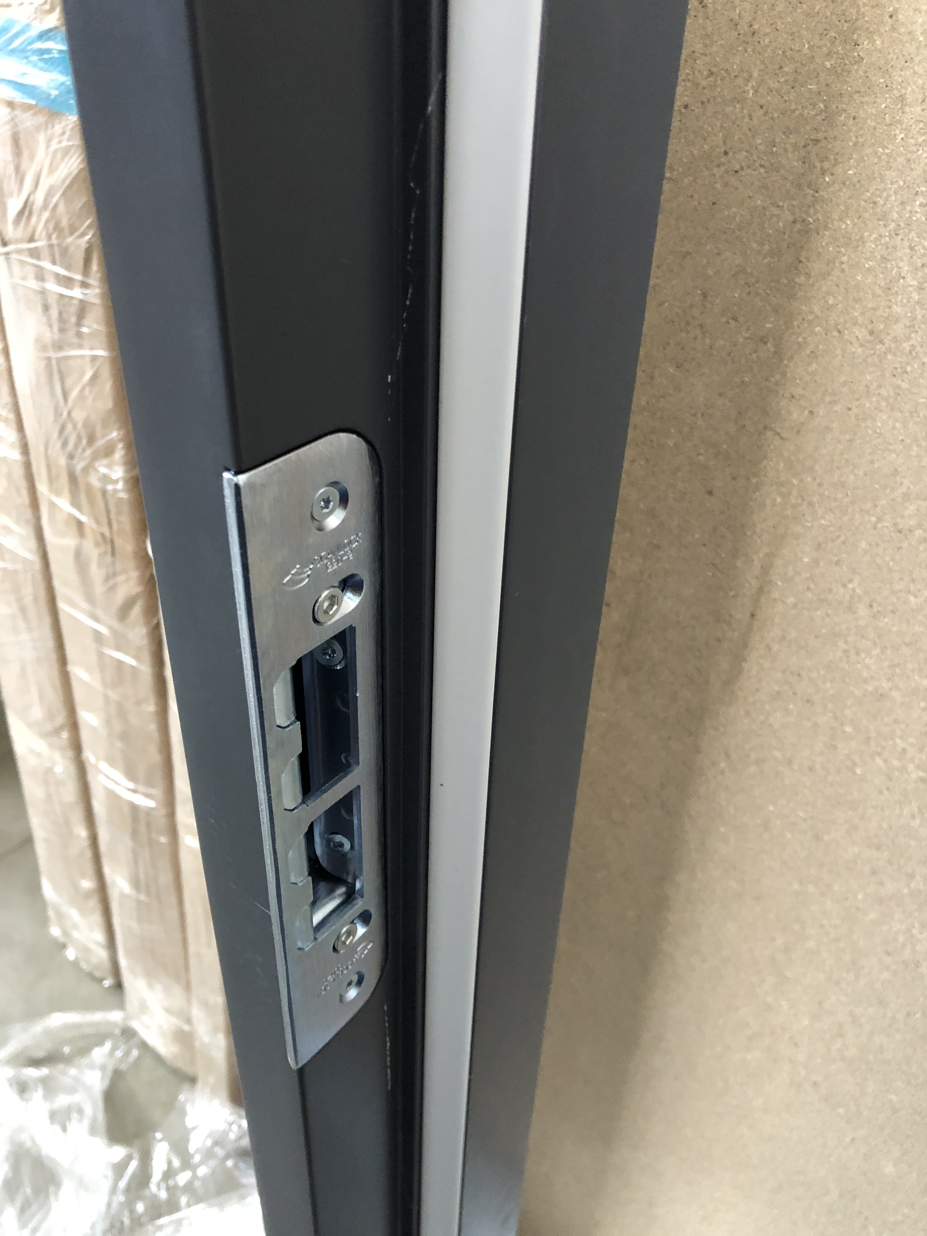 Поверхность двери - плиты HDF, армированные алюминием. Обвязка дверного полотна - комбинация LVL-бруса и массива.